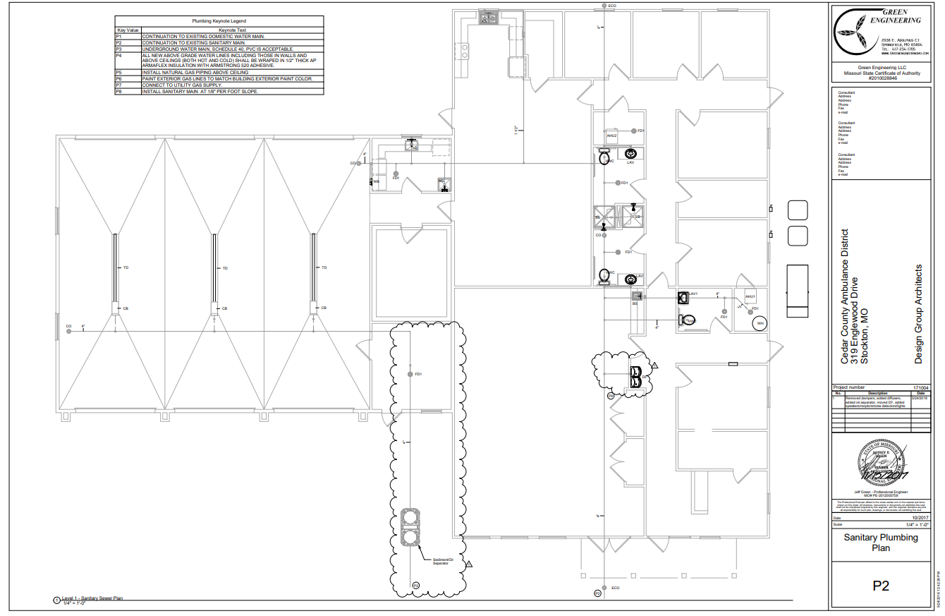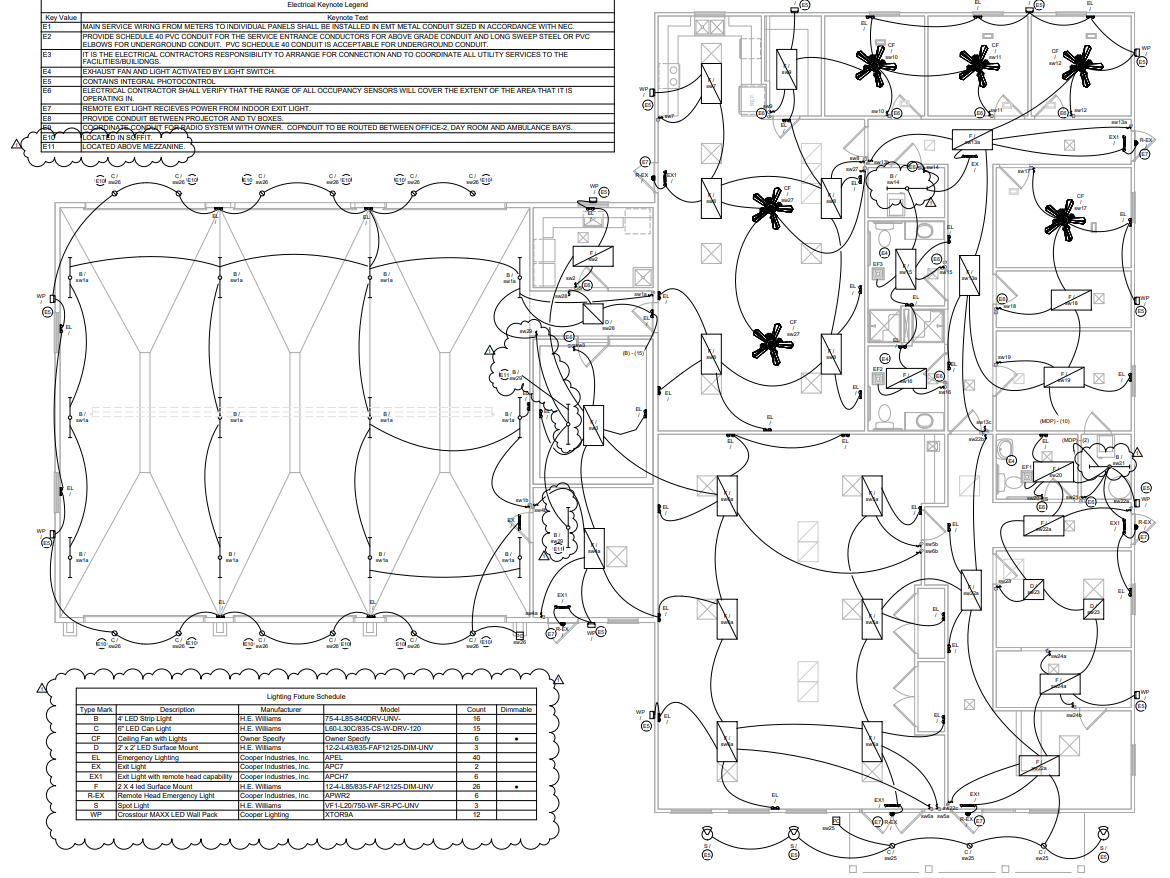 New 5500 ft2 Ambulance Station with ambulance garage, sleeping areas, laundry, kitchen, bathrooms, and common spaces.